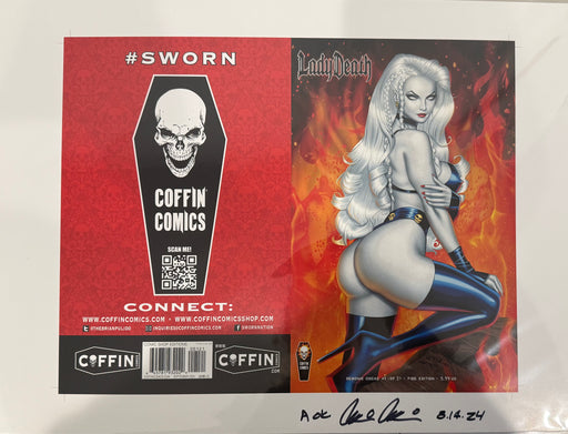 View full detailsLady Death: Demonic Omens #1 (of 2) - Comic Shop Fire Edition - Uncut Cover Sheet - Pulido Signed (Catacomb 4/9)
